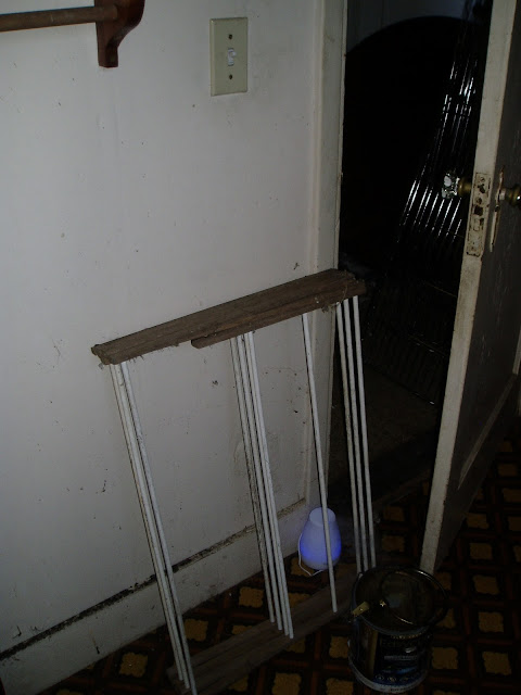 Ok, I knew I was going to have to open this door at some point, so I decided this morning was the time!! I am going to have to have this bathroom all demo'ed before I can get the water heater put in because I have decided to have the plumber complete the plumbing to the bathroom instead of the kitchen so that I will not only have hot water, but I will have a shower!!