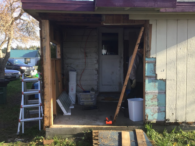 It looks like there may have been a door here before they put in the window, so this will be one place (and I am sure there will be others) that will need the new ship-lap we will make.